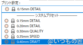 PrusaSlicerのプリセットでも、ノイズサイズごとに異なるものが用意されていますね。